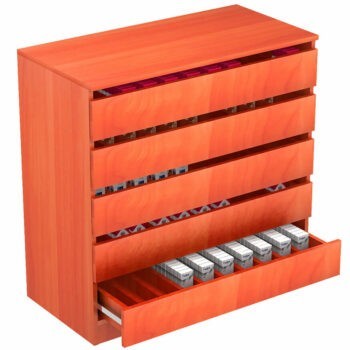 Также привлекательными для небольших магазинчиков будут выкатные стойки с полками, расположенными с внутренней стороны. На верхней глухой части можно расположить весы, а нижняя часть служит накопителем для товара.